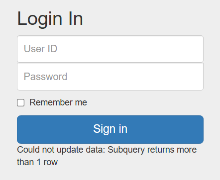 → ID 입력란에 1' or extractvalue('1', concat(':', (SQL구문) )) #